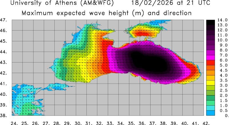 "? Группа по атмосферному моделированию и прогнозированию погоды (AM&WFG) факультета физики Афинского национального университета имени Каподистрии выдала прогноз об аномальном шторме в восточной части Черного моря 17-19 февраля. В максимуме (вторая половина дня 18 февраля) высота волн в открытом море будет достигать 14 метров! Основной удар стихии придется на Кавказское побережье,но и Крыму достанется... В общем - бережем себя! Друзья, напоминаю. В связи с проблемами в любимом Телеграмм, на всякий случай, открыл резервный канал. Присоединяйтесь по ссылке: https://max.ru/join/lK8b9ryV8iRtuC34CRufQ0zISVyIrOuZoqRB0k7mmKY #погода #волны #море #природа