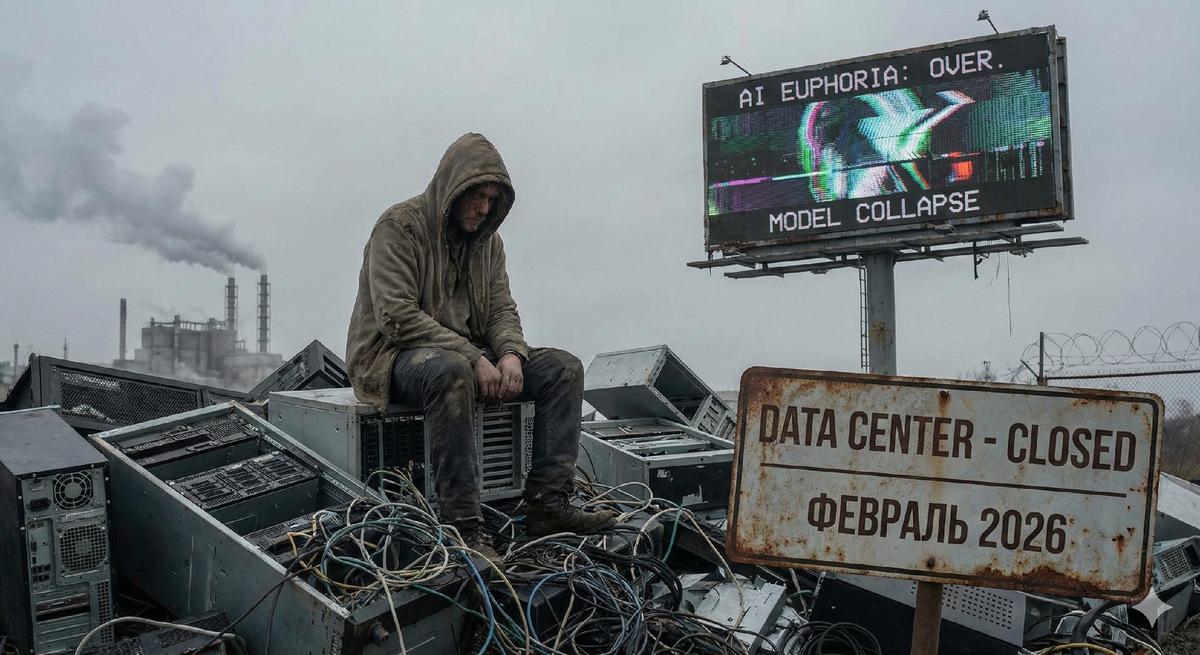 Февраль 2026 года войдет в историю не как эпоха триумфа «общего искусственного интеллекта», а как время великого похмелья после трехлетней технологической эйфории. Если 2024 год был временем обещаний, а 2025-й — периодом лихорадочного внедрения, то сегодня индустрия столкнулась с реальностью, которую невозможно масштабировать без катастрофических последствий. За блестящими фасадами интерфейсов чат-ботов и «автономных агентов» скрывается лабиринт экологических угроз, долговая яма технического мусора и системная эксплуатация человеческого труда в глобальном масштабе.
