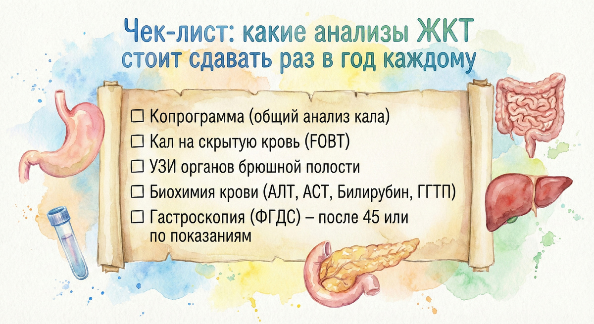 Чек-лист: какие анализы ЖКТ стоит сдавать раз в год каждому
