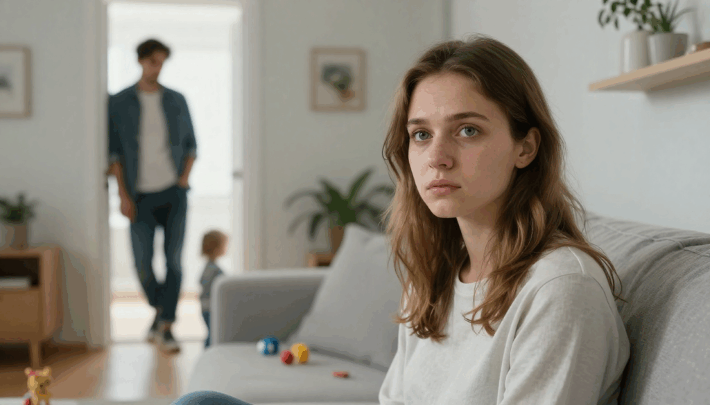 Из детской донёсся тихий плач — Ванечка проснулся. Катюша выглянула из комнаты, прижимая к себе плюшевого зайца.