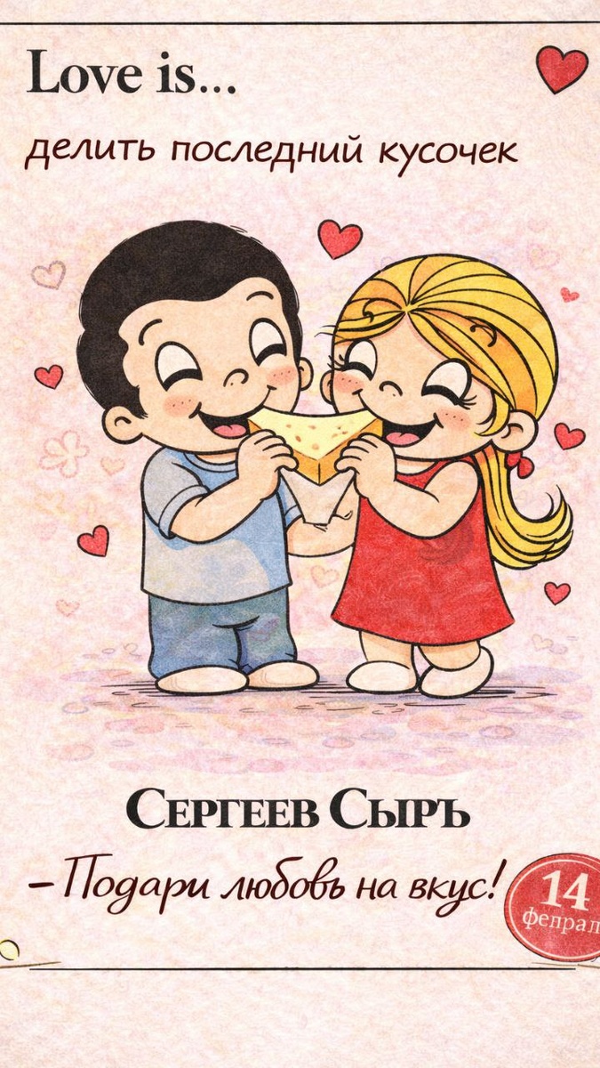 Сделали мини-комикс про любовь и сыр. Листай карточки — возможно, узнаешь себя 🙂 К 14 февраля можем собрать подарочный набор. Без лишних слов. Просто вкусно. #СергеевСыръ #Донецк #ДНР #Сыр #Подарок