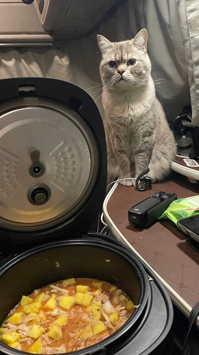 Сегодня пушистый повар решил картошечки тушеной приготовить