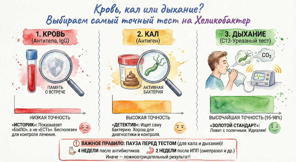 ΠΎΠ΄ΠΈΡ ΠΎ Π΄ΠΈΠ°Π³Π½ΠΎΡΡΠΈΠΊΠ΅ Helicobacter pylori, ΠΌΠ½ΠΎΠ³ΠΈΠ΅ ΡΠΎΠ²Π΅ΡΡΠ°ΡΡ ΠΎΠ΄Π½Ρ ΠΈ ΡΡ ΠΆΠ΅ ΠΎΡΠΈΠ±ΠΊΡ β ΡΠ΄Π°ΡΡ ΠΏΠ΅ΡΠ²ΡΠΉ ΠΏΠΎΠΏΠ°Π²ΡΠΈΠΉΡΡ Π°Π½Π°Π»ΠΈΠ· Π² Π»Π°Π±ΠΎΡΠ°ΡΠΎΡΠΈΠΈ. Π ΠΈΡΠΎΠ³Π΅ ΡΡΠ°ΡΡΡ Π΄Π΅Π½ΡΠ³ΠΈ Π½Π° Π½Π΅ΠΈΠ½ΡΠΎΡΠΌΠ°ΡΠΈΠ²Π½ΡΠ΅ ΠΏΠΎΠΊΠ°Π·Π°ΡΠ΅Π»ΠΈ ΠΈ ΠΏΠΎΠ»ΡΡΠ°ΡΡ Π»Π΅ΡΠ΅Π½ΠΈΠ΅, ΠΊΠΎΡΠΎΡΠΎΠ΅ ΠΈΠΌ, Π²ΠΎΠ·ΠΌΠΎΠΆΠ½ΠΎ, Π½Π΅ ΡΡΠ΅Π±ΠΎΠ²Π°Π»ΠΎΡΡ. ΠΠ°ΠΊ Π²ΡΠ°Ρ, Ρ ΠΏΠΎΠΌΠΎΠ³Ρ ΠΠ°ΠΌ ΡΠ°Π·ΠΎΠ±ΡΠ°ΡΡΡΡ, ΠΊΠ°ΠΊΠΎΠΉ ΡΠ΅ΡΡ Π΄Π΅ΠΉΡΡΠ²ΠΈΡΠ΅Π»ΡΠ½ΠΎ ΠΏΠΎΠΊΠ°ΠΆΠ΅Ρ ΠΏΡΠ°Π²Π΄Ρ, Π° ΠΊΠ°ΠΊΠΎΠΉ β Π»ΠΈΡΡ Π²Π²Π΅Π΄Π΅Ρ Π² Π·Π°Π±Π»ΡΠΆΠ΄Π΅Π½ΠΈΠ΅. 1. ΠΠ½Π°Π»ΠΈΠ· ΠΊΡΠΎΠ²ΠΈ Π½Π° Π°Π½ΡΠΈΡΠ΅Π»Π° (IgG) β Π‘Π°ΠΌΡΠΉ Π±Π΅ΡΠΏΠΎΠ»Π΅Π·Π½ΡΠΉ ΠΡΠΎ ΡΠ°ΠΌΡΠΉ ΡΠ°ΡΡΡΠΉ ΡΠ΅ΡΡ, ΠΊΠΎΡΠΎΡΡΠΉ, ΡΠ²Ρ, ΠΏΠΎΡΡΠΈ Π½Π΅ ΠΈΠΌΠ΅Π΅Ρ ΡΠΌΡΡΠ»Π° Π΄Π»Ρ ΠΏΠΎΡΡΠ°Π½ΠΎΠ²ΠΊΠΈ Π΄ΠΈΠ°Π³Π½ΠΎΠ·Π° Β«Π·Π΄Π΅ΡΡ ΠΈ ΡΠ΅ΠΉΡΠ°ΡΒ». β’ Π ΡΠ΅ΠΌ ΠΏΡΠΎΠ±Π»Π΅ΠΌΠ°: ΠΡΠΎΠ²Ρ ΠΏΠΎΠΊΠ°Π·ΡΠ²Π°Π΅Ρ Π»ΠΈΡΡ ΡΠΎ, ΡΡΠΎ ΠΠ°ΡΠ° ΠΈΠΌΠΌΡΠ½Π½Π°Ρ ΡΠΈΡΡΠ΅ΠΌΠ° ΠΊΠΎΠ³Π΄Π°-ΡΠΎ Π²ΡΡΡΠ΅ΡΠ°Π»Π°ΡΡ Ρ ΡΡΠΎΠΉ Π±Π°ΠΊΡΠ΅ΡΠΈΠ΅ΠΉ. ΠΠ½ΡΠΈΡΠ΅Π»Π° ΠΌΠΎΠ³ΡΡ ΡΠΎΡ