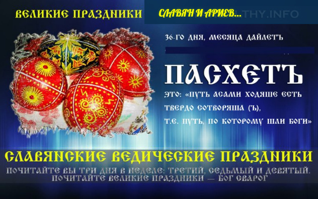 ПАСХЕТЪ - 36 Дайлетъ (месяц пробуждения природы) - сегодня, в лето 7534 от СМЗХ (4-5 апреля) во всех Родах Славян и Ариев отмечают ПРАВИЛЬНЫЙ ВЕДИЧЕСКИЙ ПРАЗДНИК ПАСХЕТЪ (к христианству не имеет никакого отношения).