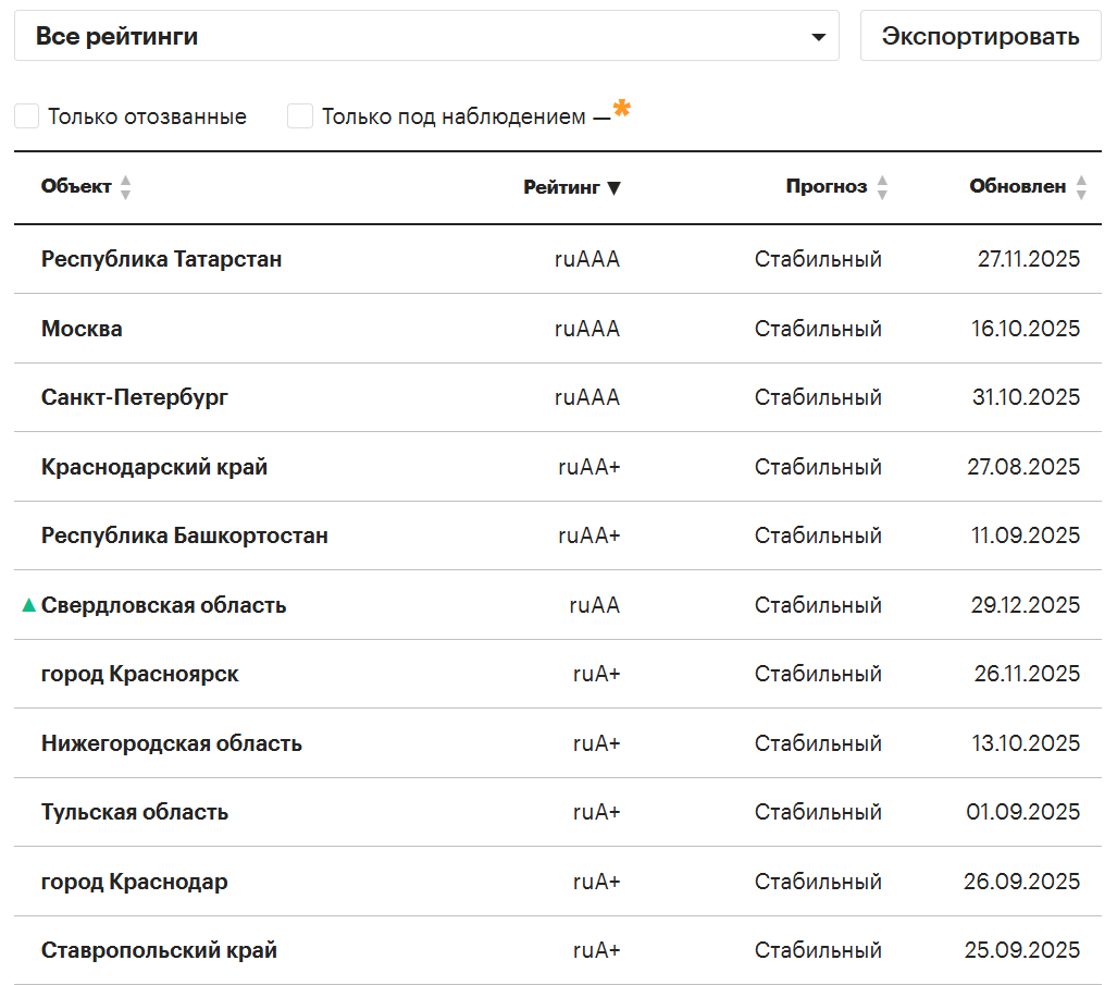 - Ищите: ruAAA для регионов-доноров (Москва, Татарстан).