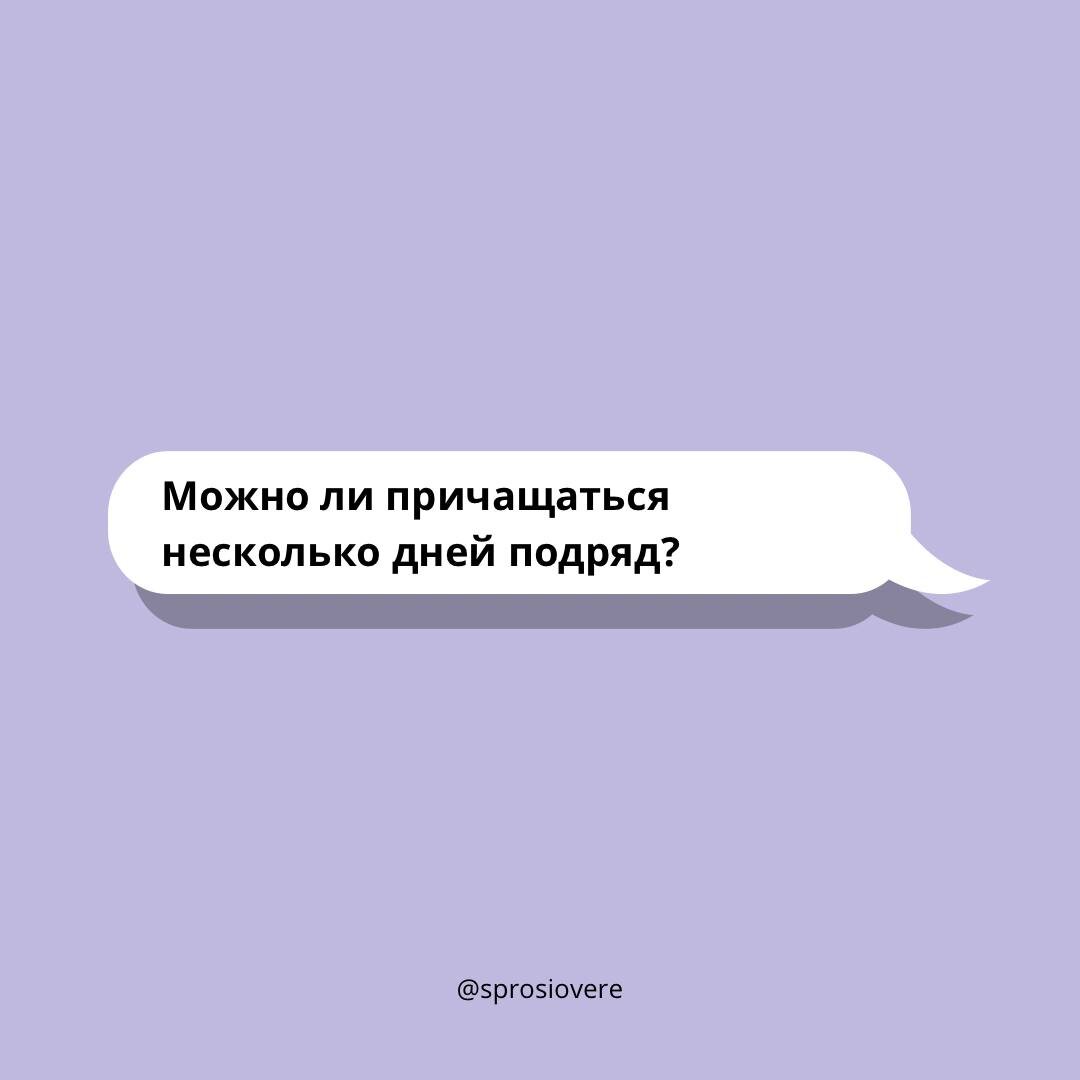 Например, на Страстной неделе. Я бы даже советовал причащаться, по крайней мере, в Великий Четверг, в Великую Субботу и в сам праздник Пасхи. И затем – причащаться на Светлой седмице. Церковный устав даже предписывает христианам на Светлой седмице наслаждаться Причащением Святых Христовых Таин, при том что пост в это время отменяется. Человек уже достаточно постился Великим постом, совершил подвиг, и потом всю неделю, начиная с Пасхи, а по сути – уже с Великого Четверга, он наслаждается Причащением Святых Христовых Таин. И в какие-то другие дни – тоже. Например, на Рождество (после Рождественского сочельника) или в иные церковные праздники. Праздники могут совпадать с именинами, с памятью особо почитаемых святых, когда особенно хочется причаститься. То есть, да, действительно, можно причащаться несколько дней подряд. #вашивопросы В Царство Божие — только вместе! Присоединяйтесь! @Священник Игорь Шумилов