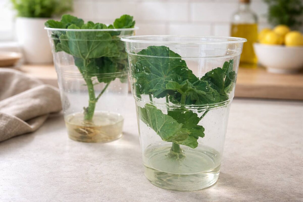 Пеларгонию можно размножать разными способами: в песке, вермикулите, агроперлите, воде, в почвобрикете. Но есть один простой и надежный метод в воде, который я доработала — листья на черенках не вянут, а корни появляются быстро и дружно.