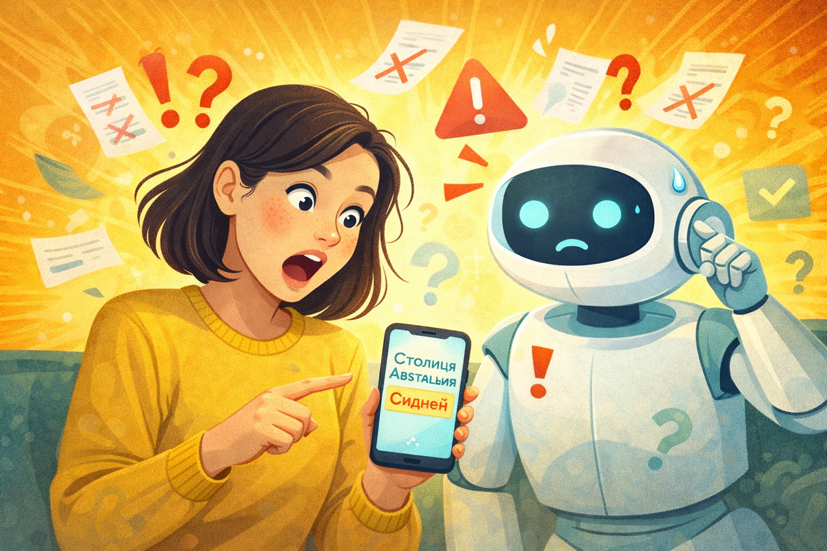 А потому что статистика ≠ знания. Самый опасный момент — уверенный тон. AI никогда не говорит: «Я не уверен, но вроде бы…» Он всегда звучит как эксперт.