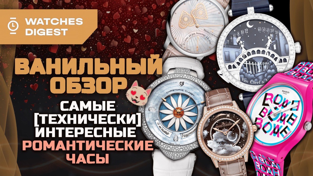 #обзор_wd Сегодня рубрика Самые-Самые посвящена Дню Влюбленных, и в неё попали самые интересные романтические часы. Но не бойтесь: эту ванильную историю мы расскажем с точки зрения часовой механики 🙂 – Christophe Claret Margot: механическое гадание «любит-не любит» в механизме из 730+ деталей; – Van Cleef & Arpels Lady Arpels Pont des Amoureux: индикация как часть романтической истории; – Jaeger‑LeCoultre Rendez‑Vous Shooting Star: «случайность» и «удача» средствами высокой механики; – Maurice Lacroix Masterpiece Embrace: романтика проникает в часовую геометрию; – Бонус! Swatch LOVE & BLAH: для снижения романтического пафоса и среднего чека в сегодняшнем выпуске, а также для повышения градуса здоровой иронии. 🎞 Смотреть на YouTube 📡 Смотреть во Вконтакте 🔎 Смотреть на Яндекс Дзен Кто ваш фаворит в этом слиянии романтики с механикой? Мы своего назовём в конце 😊 🔶 Переходи в чат, выскажи свое мнение! 🔶 Модератор 🔶 Watches Digest Market