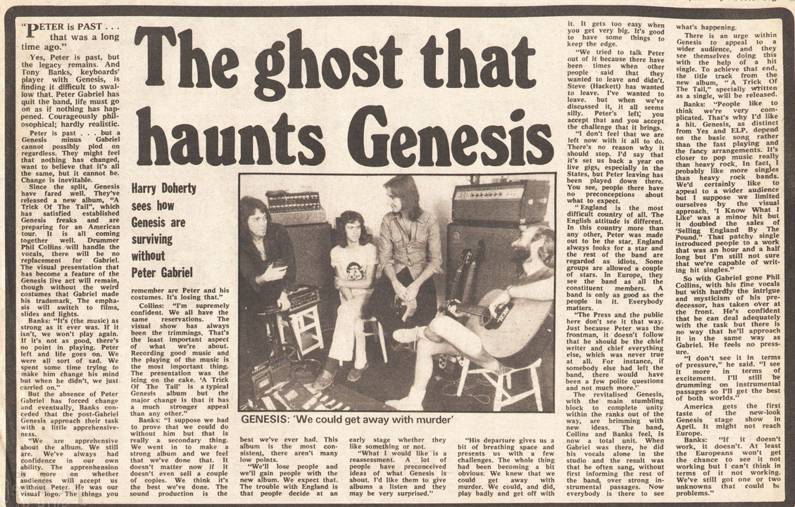 14 февраля 1976 года вышел еще один материал, а точнее интервью с Филом Коллинзом и Тони Бэнксом в Melody Maker (автор: Гарри Доэрти).