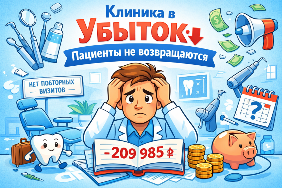 Выручка есть, пациенты приходят, врачи работают, но прибыли нет. Владелец не понимает, куда уходят деньги. Разбираем скрытую причину убыточности — проблему возврата пациентов, которая съедает всю маржу.
