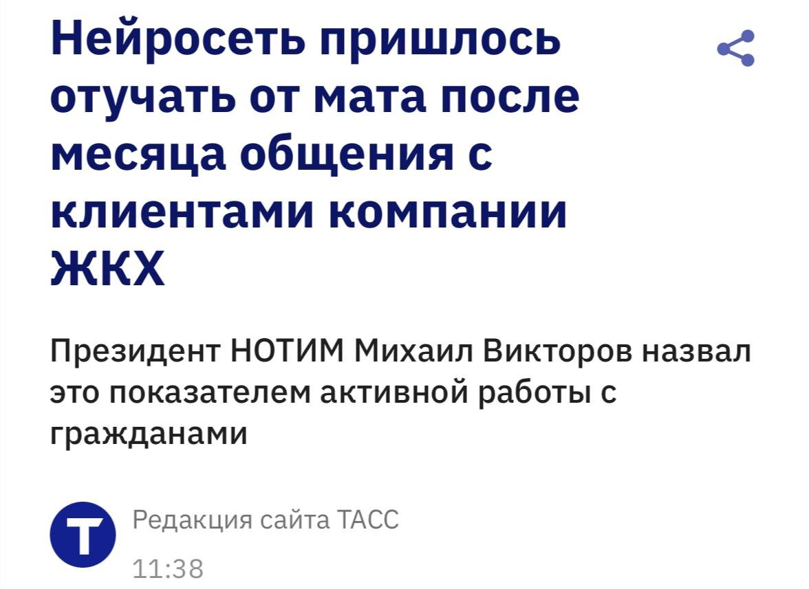 Россияне первыми в мире обучили нейросеть не только понимать мат, но и разговаривать на нём. В Новосибирске уже через месяц общения с клиентами ЖКХ, голосовой робот стал отвечать на понятном всем языке.