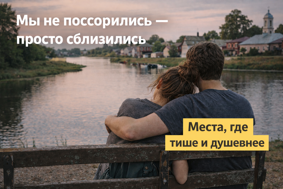 Иногда лучший ответ на вопрос куда поехать с семьёй — это город, в котором почти нечего делать. Таруса, Кинешма, Юрьевец, Бежецк — не как туристические точки, а как пространство паузы. Там нет обязательной программы. Можно выйти утром, пройтись по тихой улице, зайти в магазин у дома, купить пирог и вернуться в съёмную квартиру раньше, чем планировали. В таких местах разговоры не перебиваются экскурсиями. Мы садимся на лавку у реки и вдруг начинаем говорить о вещах, на которые в городе не хватает времени. О работе, которая устала. О страхах, которые обычно прячем. Или просто молчим, глядя на воду. В маленьких городах нет ощущения, что нужно «успеть всё». И в этой медленности легче пережить мелкие раздражения. Кто-то долго выбирает хлеб? Не страшно. Кто-то устал и хочет домой? Дом рядом. Поездка с родными в такой город редко даёт яркие фотографии. Но после неё остаётся чувство, что мы немного лучше услышали друг друга. Самые честные путешествия без туристов случаются тогда, когда мы не