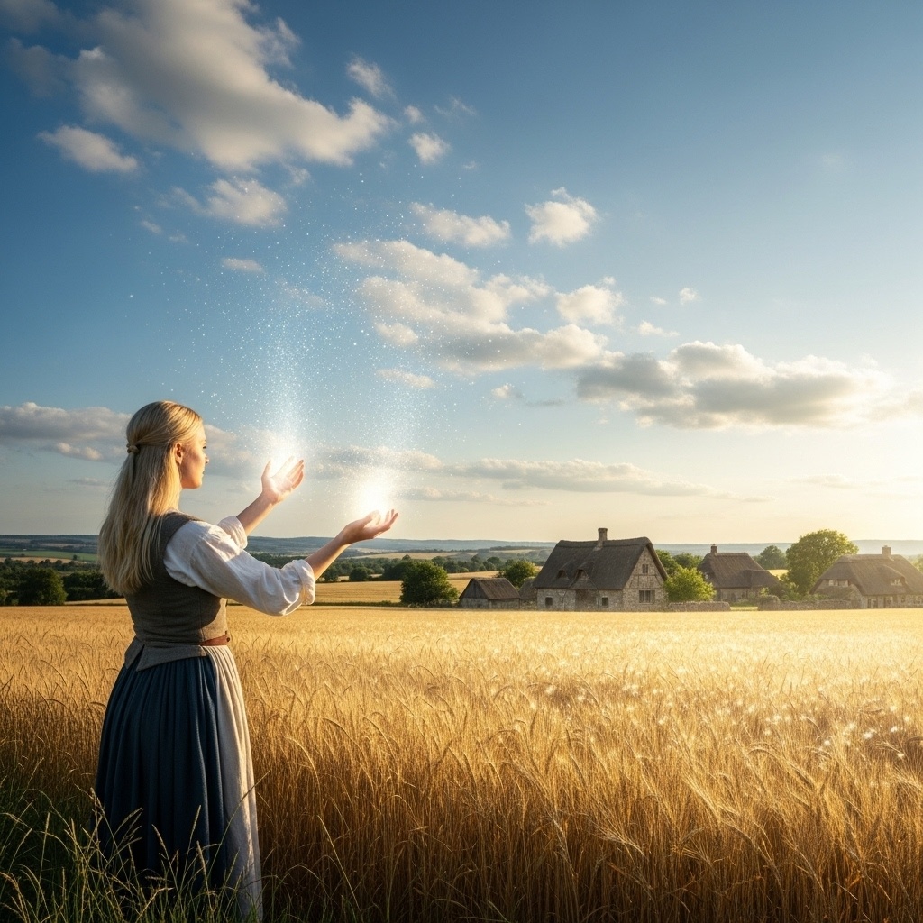 Я прикрыла глаза, наслаждаясь этим ощущением слияния. А через некоторое время тепло сменилось лёгким покалыванием и неожиданно запахло печёным хлебом. Когда я подняла глаза и вытащила руки из земли, то увидела, что колосья на поле стали ещё более золотыми, а головки пшеницы клонятся к земле. И откуда-то пришло понимание: пора собирать урожай.