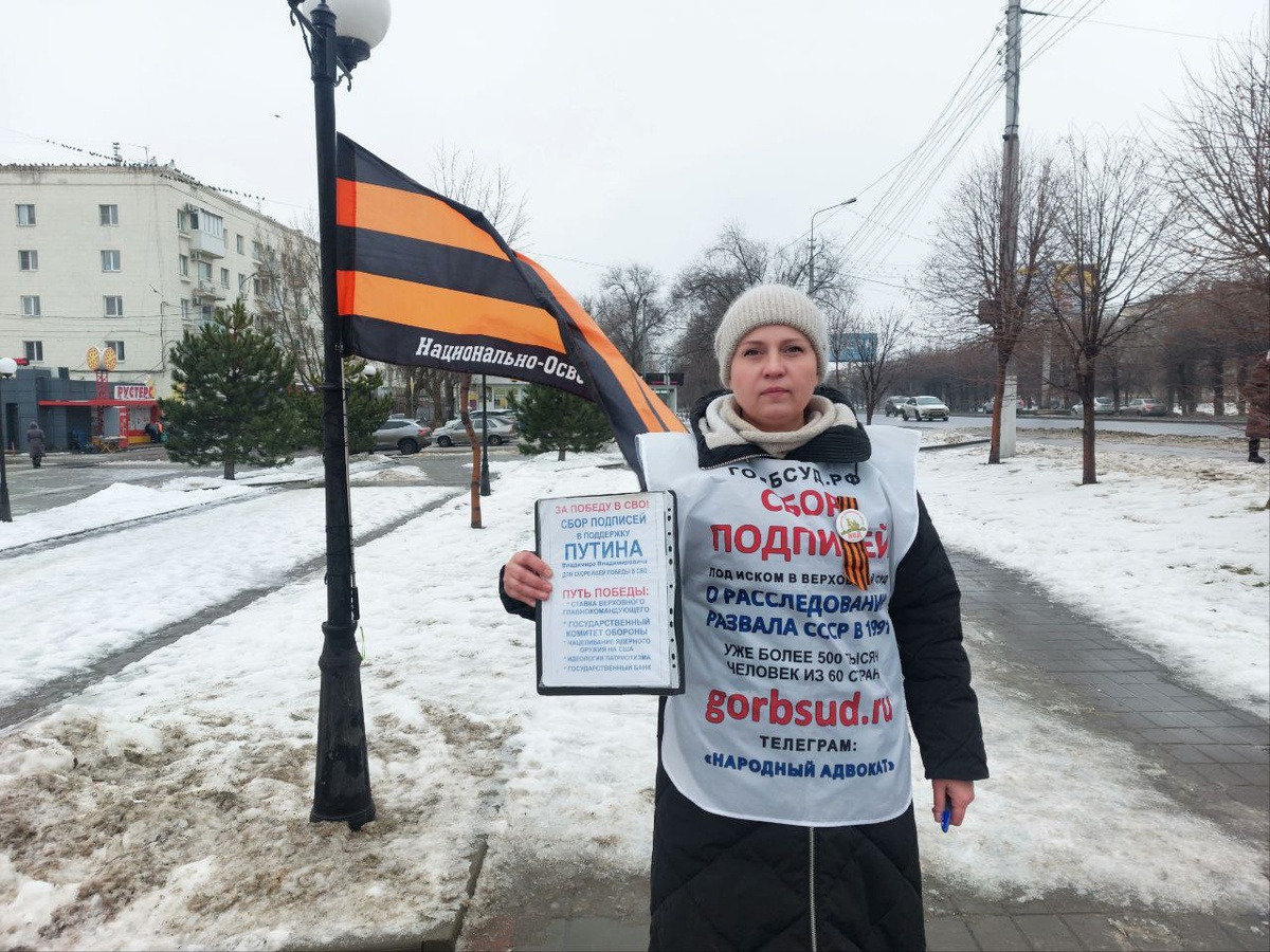 14 февраля активисты штаба НОД "Сталинград" провели одиночный пикет и акцию по сбору подписей