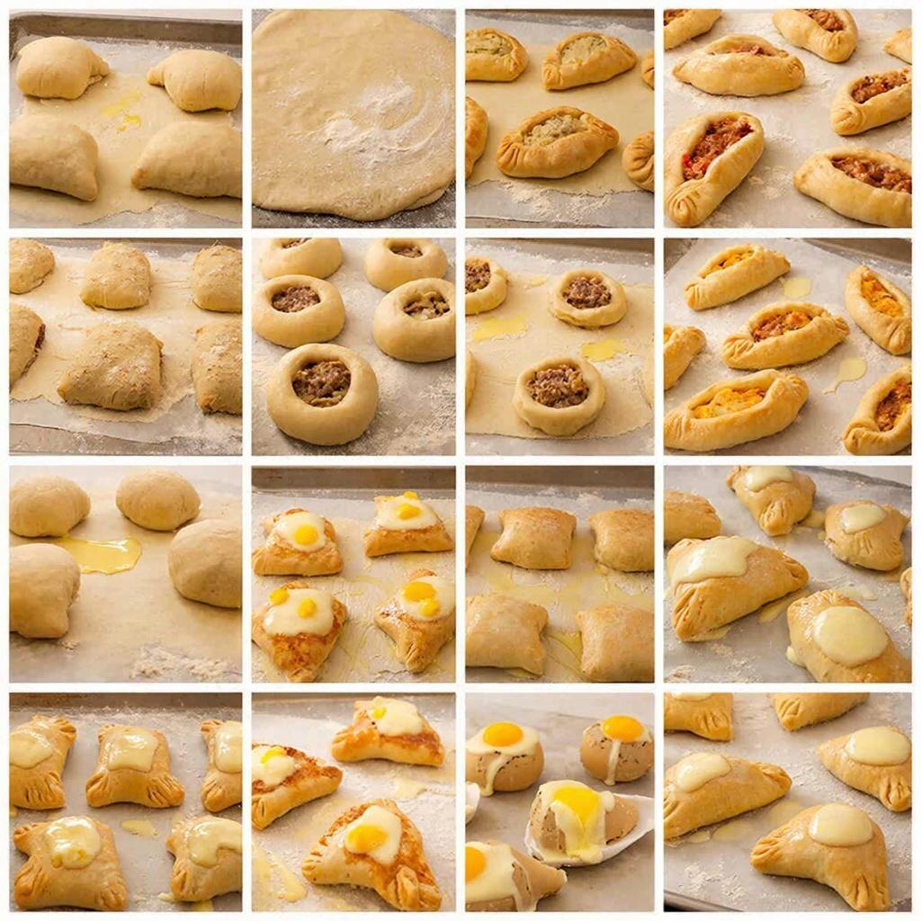 - Любая любимая начинка (мясная, рыбная, овощная, фруктовая): 10-20 г на пирожок (в зависимости от размера)