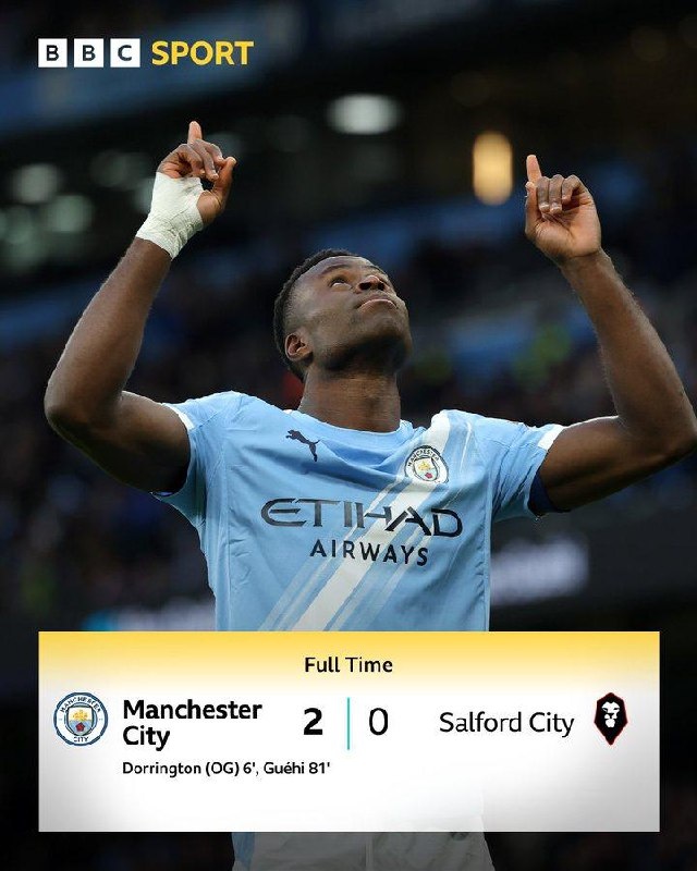 "Манчестер Сити" победил "Солфорд" из четвертого дивизиона и вышел в 5-й раунд Кубка Англии ❗️