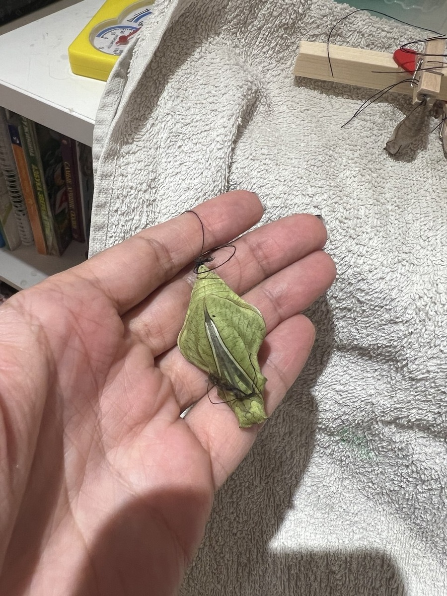 Куколку Troides rhadamantus сложно с чем-то спутать — это самая большая куколка в наборе!