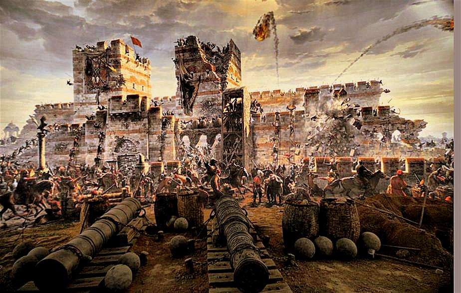 К середине XV в. Византийская империя находилась в глубоком упадке. От некогда могущественного государства остался лишь Константинополь с окрестностями, несколько городов на побережье Болгарии и часть Пелопоннеса. Население столицы сократилось с миллиона до примерно 50 тысяч человек. В этих условиях последним византийским императором стал Константин XI Палеолог, правивший в 1449–1453 гг. Он осознавал тяжесть положения, но твёрдо решил защищать город до конца. В 1451 г. на османский престол взошёл молодой и амбициозный Мехмед II, поставивший целью захватить Константинополь. Султан приказал построить крепость Румелихисар на берегу Босфора, чтобы отрезать город от Чёрного моря и прервать снабжение. Когда византийские послы прибыли с протестом, их казнили — это стало недвусмысленным сигналом о намерениях османов. Осада началась в апреле 1453 г. Силы сторон были крайне неравны: османская армия насчитывала 80–100 тысяч воинов, имела мощный флот и тяжёлую артиллерию — в том числе огромные пуш