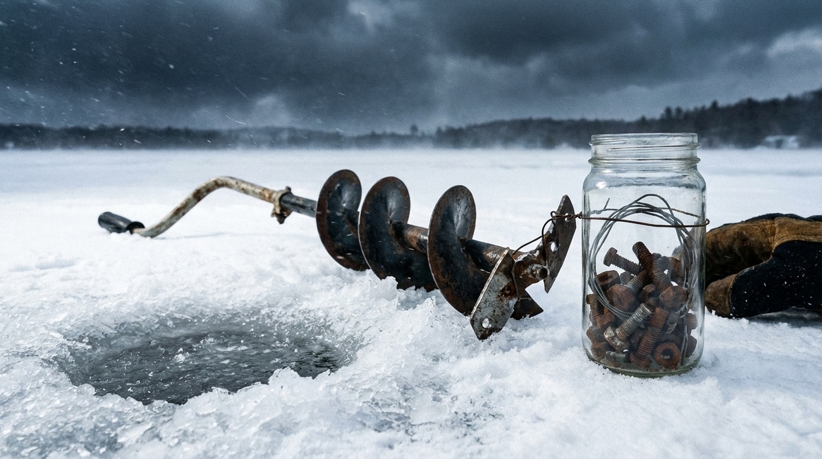 Зимняя рыбалка полна сюрпризов, и не всегда приятных. Самый страшный сон любого пингвина — это "посадить" ножи ледобура. Достаточно один раз неудачно забуриться в лед, где вмерз песок, или чиркнуть по дну на мелководье, и всё. Бур перестает грызть лед, он просто гладит его, скользит, мылит. Ты давишь всем весом, потеешь, спина отваливается, а лунки нет. Если запасных ножей с собой нет, рыбалку можно сворачивать и идти домой. Или просить бур у соседей, что не всегда удобно. Но есть один экстренный способ реанимации ножей прямо на водоеме, о котором мне рассказал один старый рыбак, когда увидел, как я мучаюсь с тупым "Тонаром". Я тогда скептически ухмыльнулся, но когда попробовал — был в шоке. Для заточки (точнее, для правки) нам не нужен точильный камень или наждачка. Нам понадобится предмет, который есть у многих в ящике с обедом, или который можно найти на берегу. Это обычная стеклянная банка или стеклянная бутылка. Приветствую вас, уважаемые рыбаки, вы на канале "Клевая рыбалка". Зву