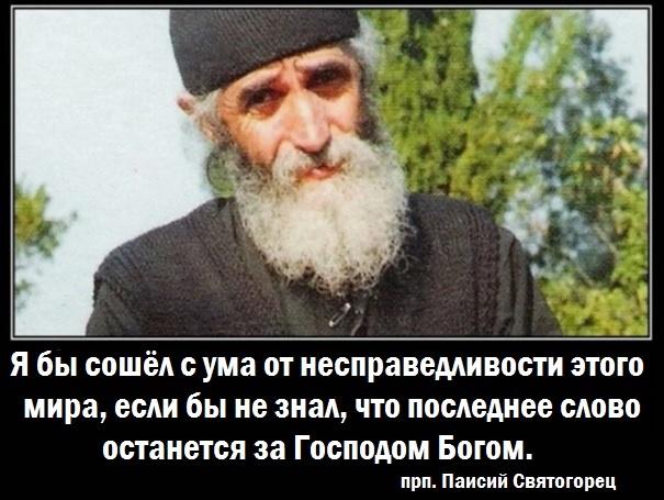 ПРАВИЛЬНЫЕ МЫСЛИ Сегодня в гостях рубрики христианский подвижник Паисий Святогорец (1924-1994) с высказыванием на тему, сколь непростую, столь и актуальную во все времена. Это – несправедливость в человеческом обществе. «Свобода, равенство, братство» - под этим и схожими лозунгами совершались почти все революции, где основной движущей силой был простой народ, одержимый желанием создать справедливое общество. Но проходило время, иногда совсем краткое, и вновь появлялись богатые и бедные, власть имущие и обездоленные. В результате, извечный вопрос «Что делать?» вновь и вновь, то тут, то там, вставал на повестку дня. Ответом на него были новые восстания и революции, которые, впрочем, уже с самого начала были обречены повторить участь предыдущих… От этой «обреченности», и, казалось бы, всевластия зла и несправедливости, можно было бы, как замечает Святогорец, сойти с ума. Если бы не одно «но». Чтобы понять, что это, надо взглянуть на всё происходящее с точки зрения Слова Божьего. Во-первых