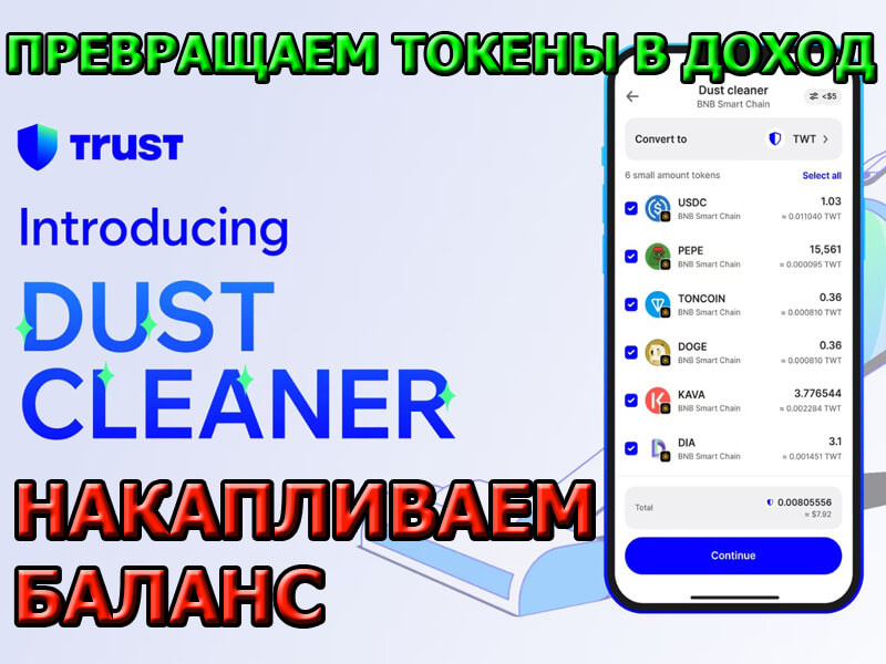 Узнайте, как превратить небольшие остатки криптовалюты на балансе кошелька Trust Wallet в пригодные для использования средства, сохраняя при этом полный контроль. Очистите небольшие остатки с помощью пылесоса Trust. Один из лучших криптовалютных кошельков Trust Wallet представил Dust Cleaner, новую встроенную в Trust кошелёк функцию, которая помогает вам извлекать больше прибыли из вашего кошелька, безопасно очищая небольшие неиспользуемые остатки токенов, обычно известные как пыль. Пыль в вашем кошельке со временем накапливается естественным образом. Это происходит из-за таких вещей, как частичные обмены, аирдропы и эксперименты в разных сетях. По отдельности эти балансы невелики, но вместе они создают беспорядок в кошельке, блокируют стоимость и даже могут представлять угрозу безопасности, особенно когда неизвестные токены остаются незамеченными. Большинство кошельков либо скрывают пыль, либо подталкивают пользователей к ручному обмену валюты. Это часто означает переплату за газ, доп