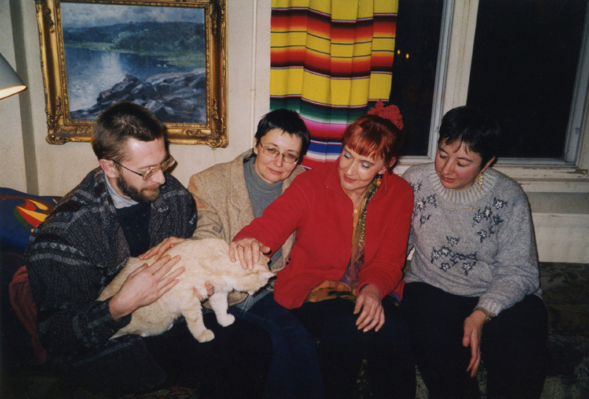 Вторая слева Вера Прямикова, директор муниципальной галереи Костромы. Третья художник Пирко Наскилла. Замечательный художник. У меня дома висит ее этюд финского озера. Запомнились ее раскрашенные, огромные скульптуры с невероятными цветовыми решениями. Я тогда впервые был за территорией СНГ. Беден как церковная крыса. В кармане было 10 евро одной монеткой и из-за этого было немного стремно. Мы приехали из Питера на автобусе в Хельсинки в 5 утра. Кажется это было под рождество. Город был как сказка весь в инее. В каждом окне была выставлена какая то освещенная рождественская композиция. Помню на мне были дырявые зимние сапоги и все время промокали ноги. Мы приехали в Финляндию с Верой вдвоем. Это была групповая выставка, но остальные авторы ехать не захотели сославшись на занятость и денежные проблемы, а кому то нужно было таскать папки с графикой. У меня денежных проблем конечно же не было, кроме дырявых сапог))). В это время суток на улице не было не души, только одинокий бомж или нар