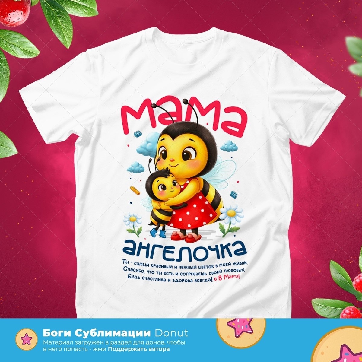 Принт на футболку Мама ангелочка (для мамы на 8 марта). Чтобы скачать бесплатно, поддержите нас через VK Donut нажав «Поддержать автора»