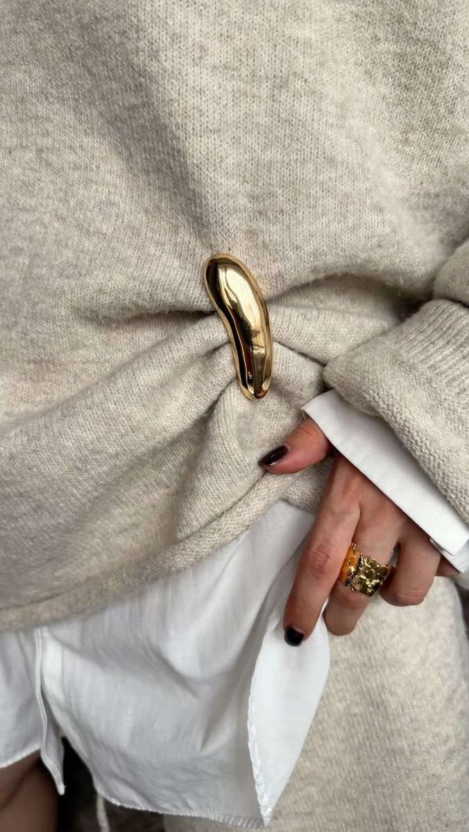 Не бойтесь смешивать золото с серебром, а также украшения разной толщины и стиля. Многослойность — ключ к современному «вау»-эффекту. Например, носите браслеты и кольца в разных металлах сразу, гармонично сочетая с простыми однотонными вещами. Это самый простой способ добавить трендовость своему луку.