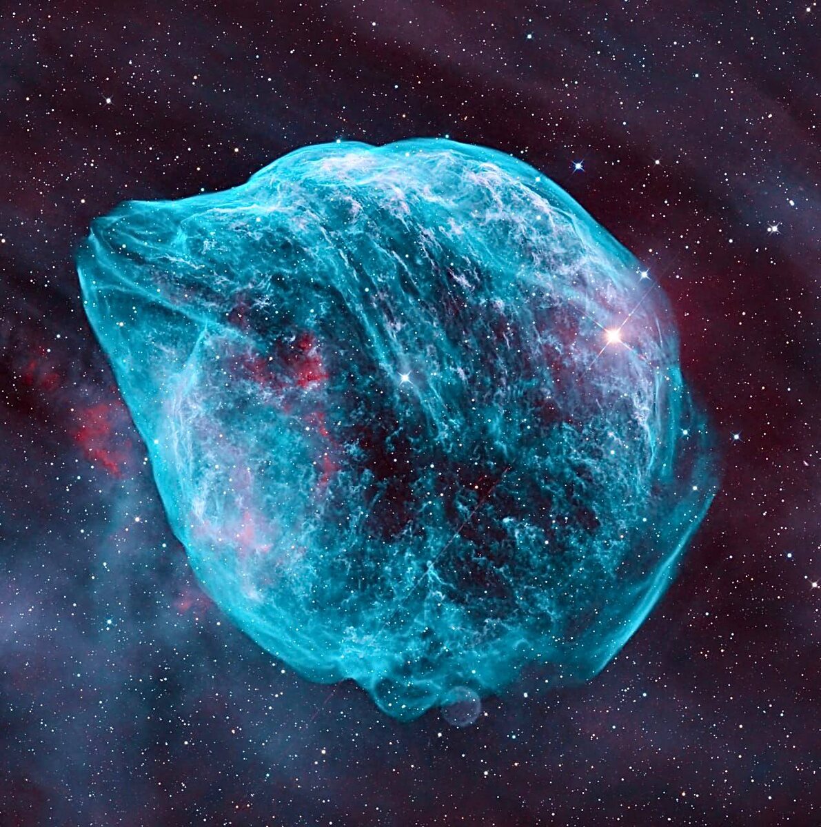 очертания называют «Дельфином» Этот гигантский пузырь ионизированного водорода диаметром около 60 световых лет был выдут мощнейшим звездным ветром от звезды EZ Canis Majoris — раскаленного гиганта, который в 20 раз массивнее Солнца и исторгает свое вещество в пространство со скоростью до 1700 километров в секунду. Эта туманность служит для астрономов уникальной лабораторией, позволяя изучать финальные стадии эволюции массивных светил непосредственно перед их фатальным взрывом как сверхновых. Спокойной ночи, земляне! «Щукин и всё» в Max