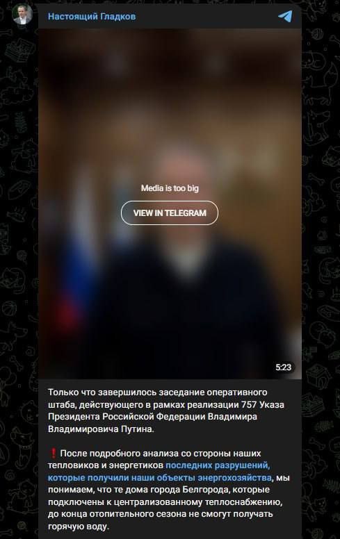 Горячую воду не будут подавать в дома Белгорода, подключенные к централизованному теплоснабжению до конца отопительного сезона, заявил губернатор области Гладков, комментируя последствия вчерашнего обстрела города.