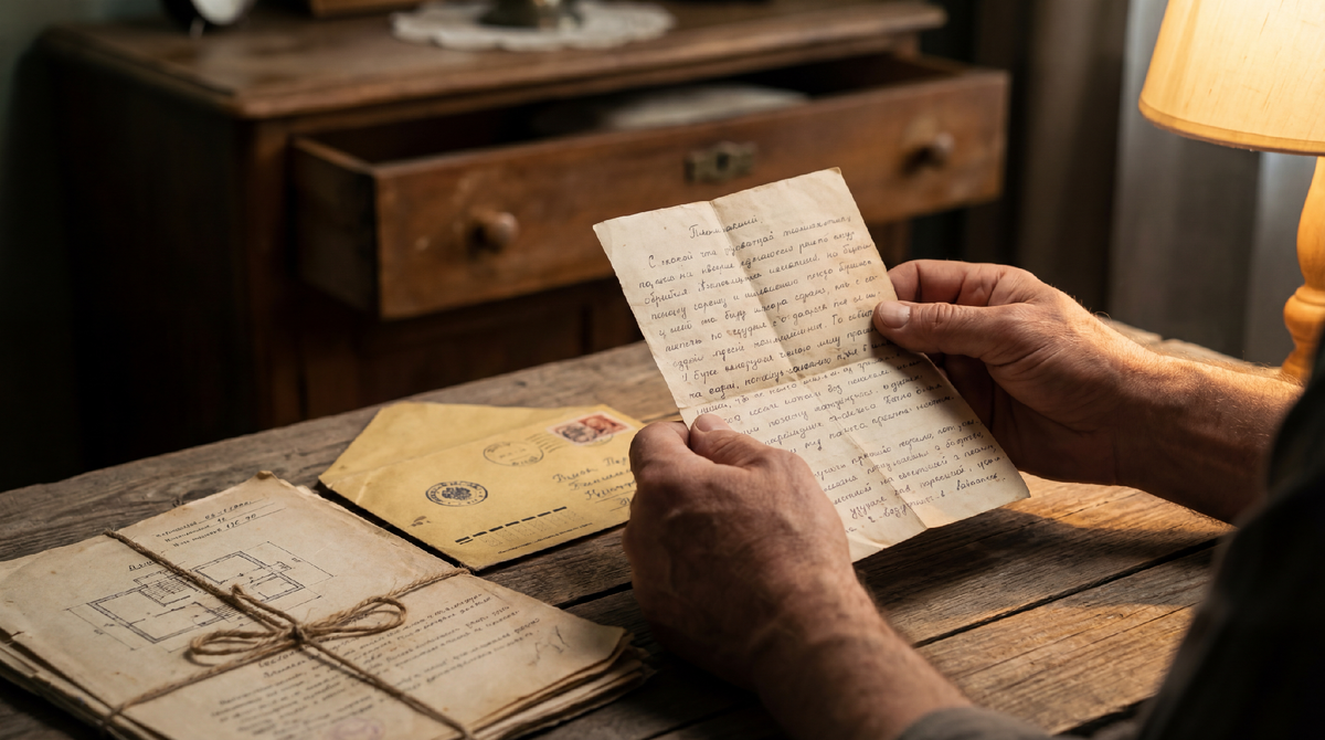 Я протянул ему письмо. Он взял, развернул. Читал молча. Медленно. Я видел как меняется его лицо. Губы сжались. Морщина между бровей. Он дочитал. Сложил письмо. Отдал обратно.