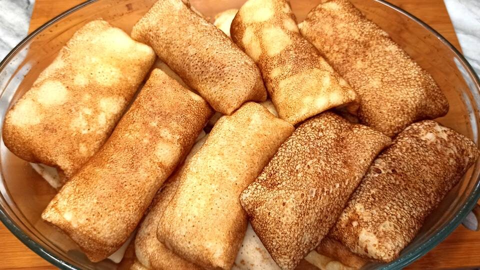Здравствуйте, дорогие друзья! 😊 Сегодня делюсь своим любимым рецептом — блинчики с мясом в духовке. Безумно вкусные, сочные, ароматные — честно, пальчики оближешь! Я готовлю их и на Масленицу, и просто так, а иногда делаю сразу побольше — впрок. Очень удобно: достал из морозилки, разогрел — и готов полноценный ужин. Готовлю тесто для блинчиков Для теста беру: В миске взбиваю яйца с солью и сахаром до лёгкой пены. Добавляю молоко, перемешиваю. Затем постепенно всыпаю муку, обязательно размешиваю венчиком, чтобы не было комочков. Дальше вливаю кружку крутого кипятка, постоянно помешивая. Тесто сразу становится более гладким и эластичным — блинчики потом отлично переворачиваются и не рвутся. В конце добавляю растительное масло и даю тесту постоять 10–15 минут, чтобы мука «раскрылась». Как я жарю блины — подробно Сковороду хорошо разогреваю заранее. Это очень важно! Если вылить тесто на холодную сковороду — блин не получится красивым. Первый раз я слегка смазываю сковороду растительным
