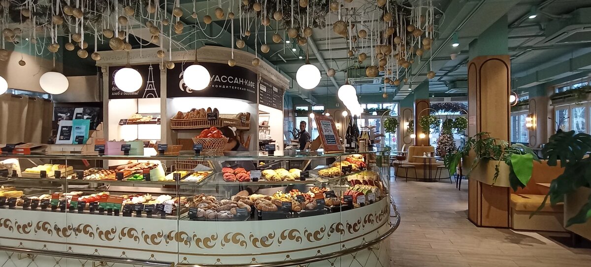 - У богато оформленных витрин, пахнущих кофе и выпечкой