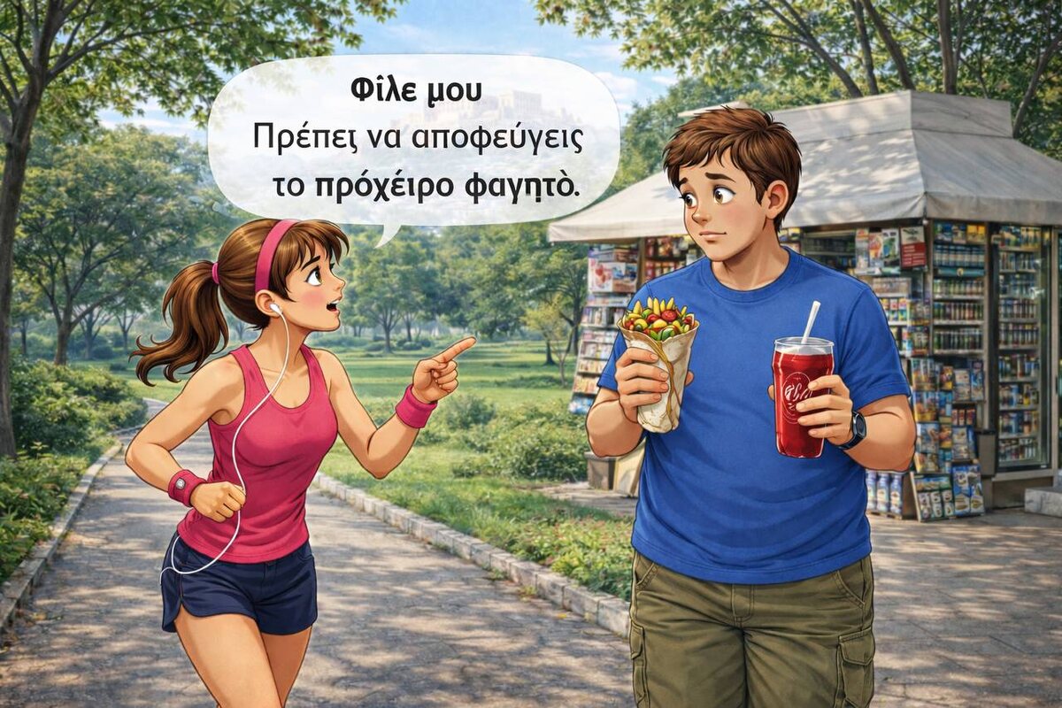 ! 🌙✨ Сегодня суббота — Σάββατο 🗓 И для многих греков это время cheat meal 😎🍔 Всю неделю — правильное питание 🥗, а в субботу можно расслабиться… Σήμερα θα πάρω κάτι πρόχειρο! 😋 Сегодня возьму что-нибудь вкусное и «запрещённое» 😉 А что же это такое — πρόχειρο φαγητό? 👇 Слово πρόχειρος / πρόχειρη / πρόχειρο происходит от древнегреческого: • προ- — перед, заранее • χείρ (рука) — рука 👉 το χέρι Это современная форма древнего слова χείρ. То есть что-то, что можно быстро взять, без подготовки. В четверг мы говорили про Τσικνοπέμπτη — весёлый «мясной четверг» 🍖🔥, когда греки наслаждаются мясом перед началом Великого поста. А сегодня продолжаем пополнять нашу копилку слов 🐷📚 (лексическую копилочку 😉). 🍽 Πρόχειρο φαγητό Πρόχειρο φαγητό — это быстрая еда, перекус «на скорую руку» ⏳ Это по сути аналог английского junk food 🍔 Самый популярный пример — γύρος 🥙 Пита (πίτα) + мясо + картошка фри (πατάτες) 🍟 + помидор (ντομάτα) 🍅 + лук (κρεμμύδι) + τζατζίκι 🤍 Что ещё добавим