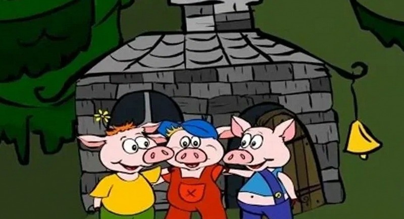 А всё начинается так просто: три брата уходят из дома Мать говорит им: «Вы выросли. Пора строить свои дома». Первый поросёнок ленив — строит дом из соломы.