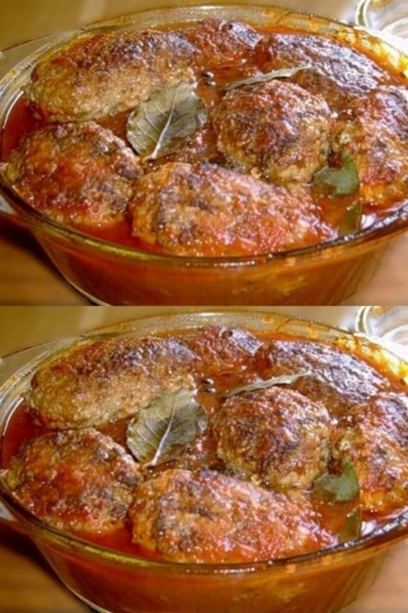 Πоложить котлеты в форму для запекания, залить разведённой томатной пacтой, добaвить лaвpовый лиcт. пеpец гopoшкoм и coль.