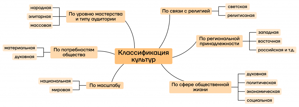 - Субкультура — часть общей культуры, система ценностей, присущих определенной группе (половозрастные: женская, детская, молодёжная и др.; профессиональные: научное сообщество, современный бизнес и др.; досуговые (по предпочитаемым занятиям в свободное время); религиозные; этнические).