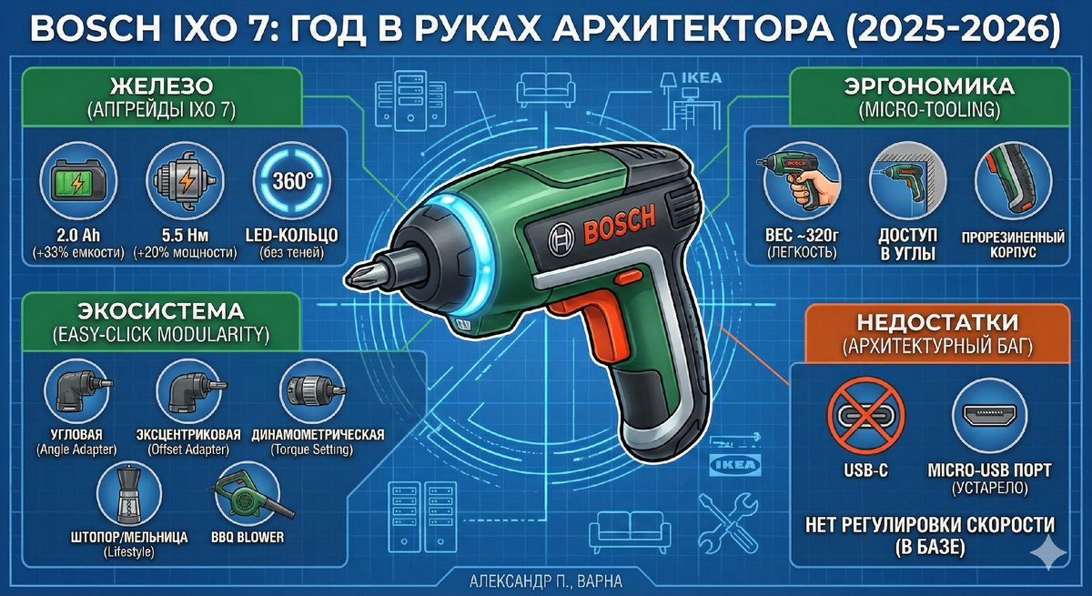 βBosch IXO 7 β ΡΡΠΎ Π½Π΅ Π·Π°ΠΌΠ΅Π½Π° Π±ΠΎΠ»ΡΡΠΎΠΌΡ ΡΡΡΡΠΏΠΎΠ²Π΅ΡΡΡ. ΠΡΠΎ Π΅Π³ΠΎ ΡΠ»Π΅Π³Π°Π½ΡΠ½ΠΎΠ΅ Π΄ΠΎΠΏΠΎΠ»Π½Π΅Π½ΠΈΠ΅. ΠΡΠΎ ΠΈΠ½ΡΡΡΡΠΌΠ΅Π½Ρ, ΠΊΠΎΡΠΎΡΡΠΉ ΠΆΠΈΠ²Π΅Ρ Π½Π΅ Π² Π³Π°ΡΠ°ΠΆΠ΅, Π° Π² ΡΡΠΈΠΊΠ΅ Π΄ΠΎΠΌΠ°ΡΠ½Π΅Π³ΠΎ ΡΡΠΎΠ»Π°.