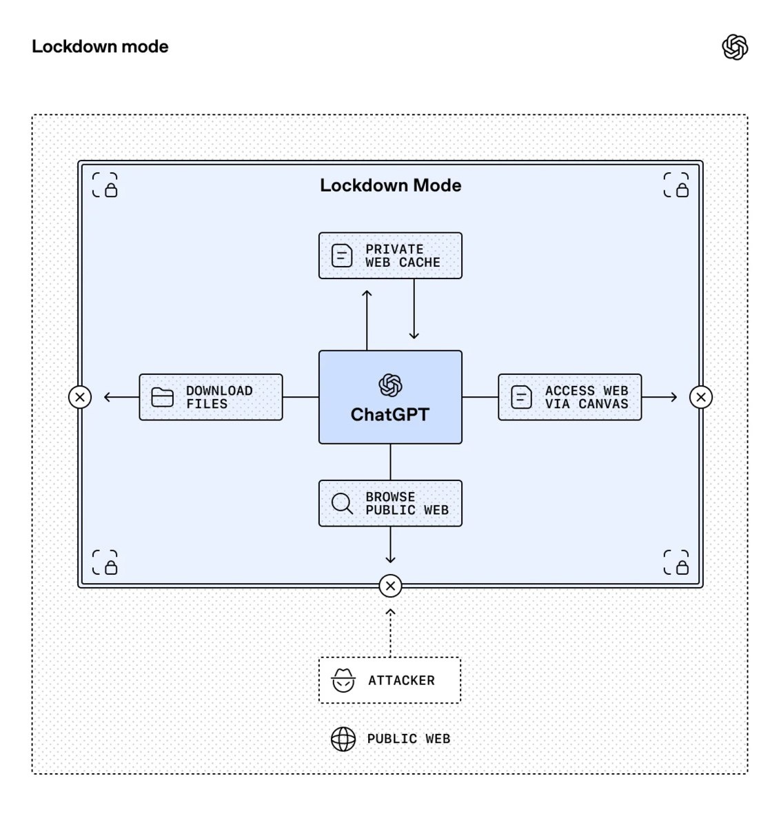 OpenAI представила в ChatGPT режим Lockdown Mode для снижения риска утечек и защиты от кражи данных через промпт-инъекции. В этом режиме: • ограничен поиск по интернету, • отключены функции «глубокое исследование» и режим ИИ-агента. Пока Lockdown Mode доступен только корпоративным клиентам и в режиме «здоровье» в США. https://dzen.ru/id/5c0e38ff46ef5c00aaa80527