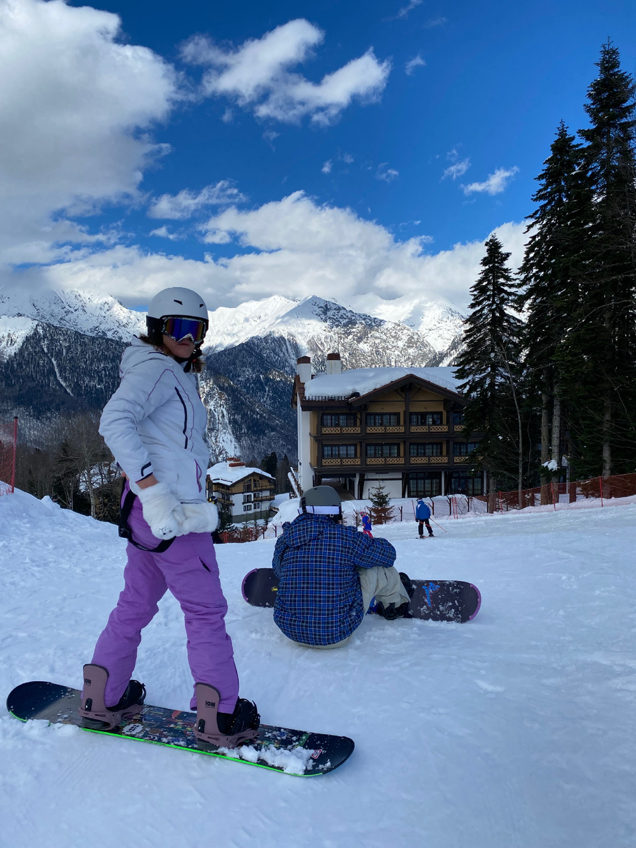 Соревнуются наши и белорусы. Не думайте, что это неинтересно. Это круто. Нас пригласил на биатлон Губерниев. Не то что лично нас. Он сказал по телевизору, что приглашает всех любителей биатлона. А это мы. Еще он добавил, что цены на ски-пассы — это билет на подъемники и входной билет на соревнования — всего 500 рублей. Сейчас я про цены всё расскажу. Билет на электропоезд «Ласточка» Имеретинский курорт (сейчас это «Сириус») — «Роза Хутор» стоит 300 рублей. Можно купить туда-обратно, это 600. Приехали, идете за билетами. Вот там я узнала много интересного. Билеты обычным гражданам стоят 2900, если вам 60 лет — 2200, но больше всех повезло детям до 7 лет и взрослым 70+. Вот этим счастливчикам билет стоит один железный рубль. Вот это счастье. Вы думаете, в 7 и 70 не катаются на горных лыжах. Вот и не угадали. С нами в подъемник вошли и даже въехали в детской коляске лыжники. Дедуся худенький, высокий, при полной экипировке, и внуки такие же худенькие и веселые. Все с лыжами. Атмосфера на горнолыжном курорте, как на картинках про Куршавель. Люди красивые и счастливые. В такой красоте все преображаются.