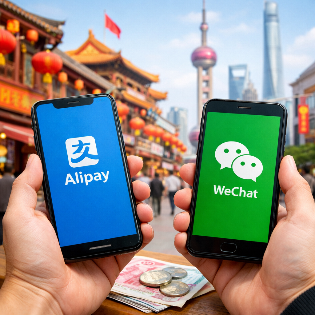 Перед поездкой в Китай я решил не полагаться на наличные и заранее подготовил мобильные кошельки. В Китае это основной способ оплаты, и без них можно, но придётся постоянно искать сдачу и «особые» кассы.
