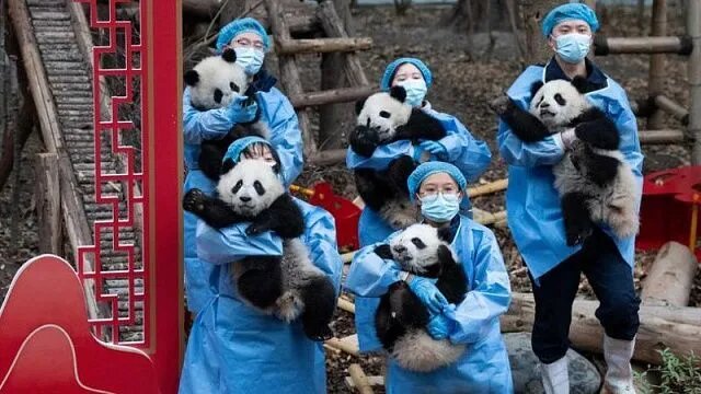 В Китае 30 новорожденных детенышей большой панды поздравили людей с Праздником весны