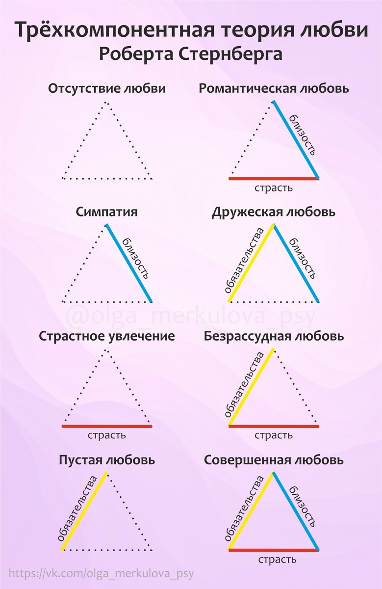 Типы любви — штука условная, но эта теория помогает оценить реальную обстановку в паре и понять, какую именно сферу нужно развивать, если возник кризис.