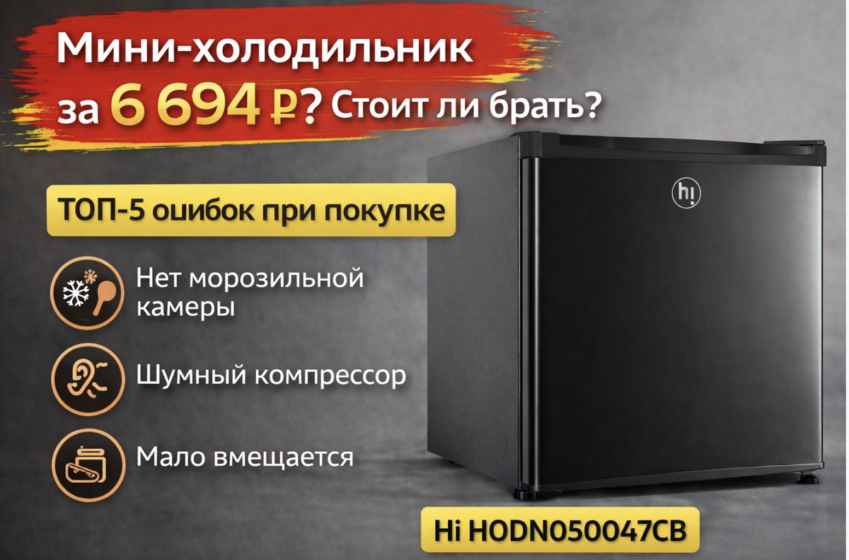 А потом выясняется, что он шумит, не морозит или в него ничего не помещается. Разберём 5 самых частых ошибок на примере Hi HODN050047CB, который сейчас стоит 6 694 ₽ вместо 10 299 ₽. На деле компактные модели сильно отличаются по качеству сборки и охлаждения. Дешёвые варианты: