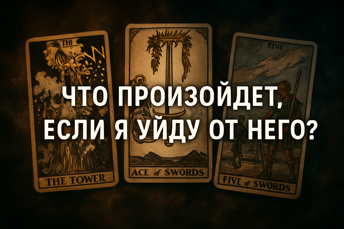 Если вы уйдете от него, это запустит цепочку болезненных, но необходимых событий. Башня разрушит то, что держалось на нездоровых основаниях. Туз Мечей принесет ясность и понимание истинной картины. 5 Мечей покажет, что расставание не будет легким и чистым — останутся шрамы, горечь и, возможно, токсичные последствия.