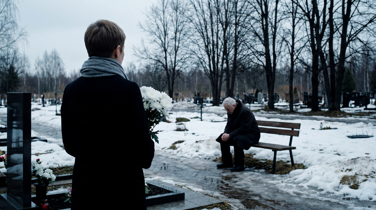 Отец стоял там же, у соседней могилы. Голова опущена, плечи ссутулились ещё сильнее. Он выглядел совсем старым. Совсем одиноким.