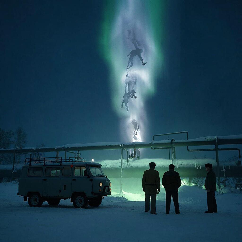 Они вывалились из машины. И увидели. В ста метрах от них, прямо над трассой газопровода, в воздухе висело свечение. Не шар, не луч, а дрожащее марево, похожее на северное сияние, только вертикальное, уходящее в небо и в землю. Оно пульсировало в такт гулу. И в этом мареве двигались тени. Человеческие силуэты, но вытянутые, искажённые, словно смазанные временем.