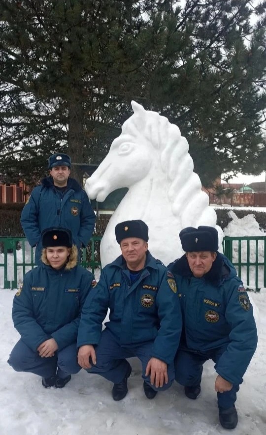 Коллеги, увидев красоту около пожарной части, между вызовами просят слепить что-нибудь оригинальное для красивых фотографий на память.