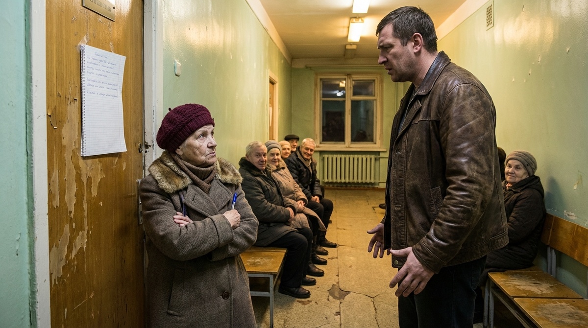 — Но он имеет человеческую силу. Здесь сидят люди, которые встали в шесть утра, ехали на автобусе в темноте, стояли на морозе. Вон бабушка в синей дублёнке — ей восемьдесят два года, у неё ноги болят, она еле дошла. Вон мужчина в камуфляже — он после ночной смены, не спал. Вон девушка, — она кивнула на меня, — ей просто справку получить, она уже полтора часа ждёт. И все молчат. Все терпят. Потому что понимают: если каждый начнёт лезть без очереди, то не будет вообще ничего. Только хаос.